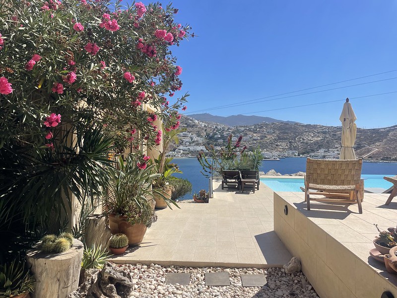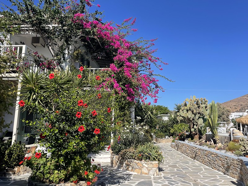 Előző alkalommal a sziget másik oldalán lévő Psathi beachen béreltünk valamit, akkor még covid volt, maszkot kellett hordani, és nem volt komfortos napi 2×1 órát tekeregni a hegyekben még a pékhez is. Most csak sétálni kellett, vagy lett volna napi 2× busz, de ahhoz időzíteni az étvágyat nem olyan egyszerű.