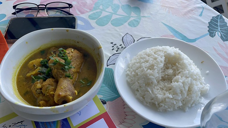 Az ebéd karibi robbantott csirkés curry volt, rizzsel. Annyira nem ájultam be tőle, de legalább kaja volt.