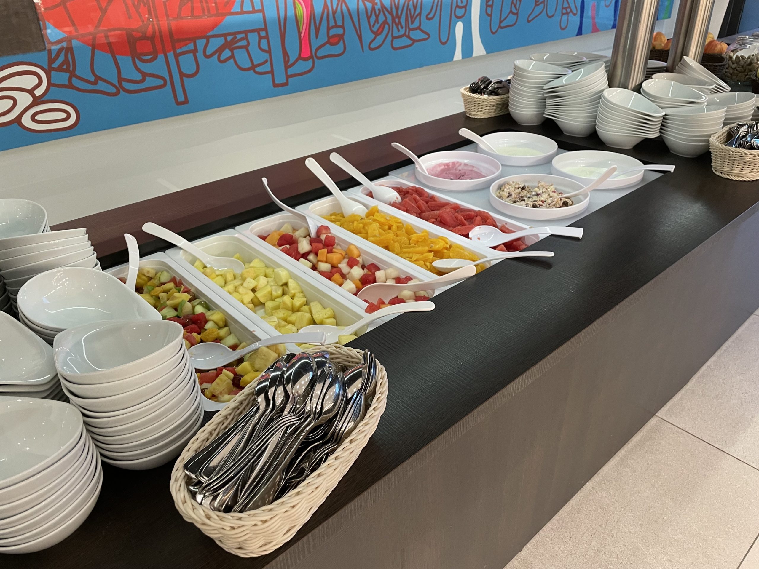 A szoba tök rendben volt, bár hajnali 3-kor már teljesen mindegy volt, csak ágy legyen benne. A dolog érdekessége, hogy 11-kor indult a gépünk, tehát 9-re vagy fél 9-re ott kellett lenni, mi meg nem akartuk az utolsó pillanatra hagyni a dolgot, így fél 7 körül már lent voltunk reggelizni. Merthogy reggeli is járt.